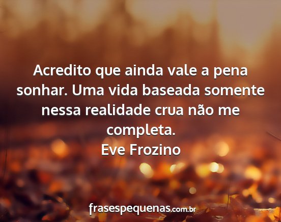 Acredito que ainda vale a pena sonhar. Uma vida baseada somente nessa realidade crua não me completa.Eve Frozino