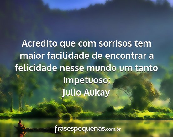 Acredito que com sorrisos tem maior facilidade de encontrar a felicidade nesse mundo um tanto impetuoso;Julio Aukay