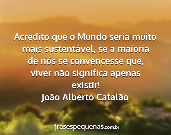 Acredito que o Mundo seria muito mais sustentável, se a maioria de nós se convencesse que, viver não significa apenas existir!João Alberto Catalão