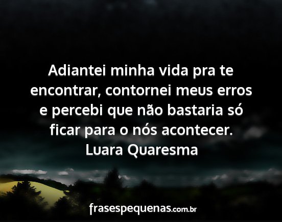 Adiantei minha vida pra te encontrar, contornei meus erros e percebi que não bastaria só ficar para o nós acontecer.Luara Quaresma