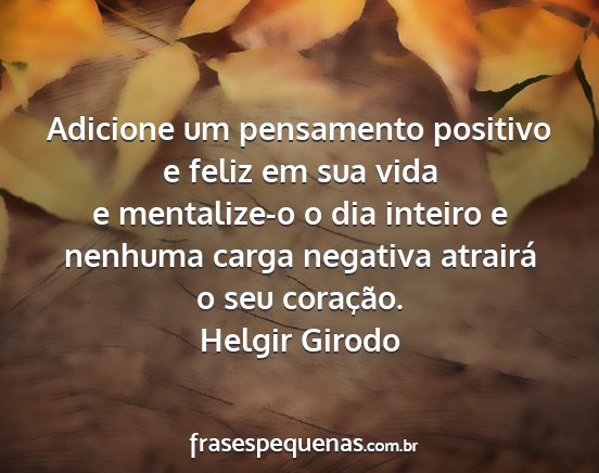 e mentalize-o o dia inteiro e nenhuma carga negativa atrairá o seu coração.Helgir Girodo