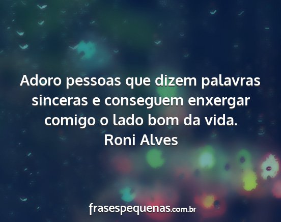 Adoro pessoas que dizem palavras sinceras e conseguem enxergar comigo o lado bom da vida.