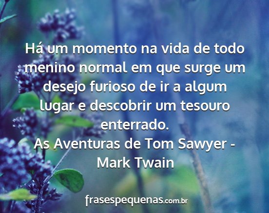 Há um momento na vida de todo menino normal em que surge um desejo furioso de ir a algum lugar e descobrir um tesouro enterrado.As Aventuras de Tom Sawyer - Mark Twain