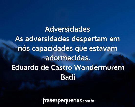 As adversidades despertam em nós capacidades que estavam adormecidas.Eduardo de Castro Wandermurem Badi