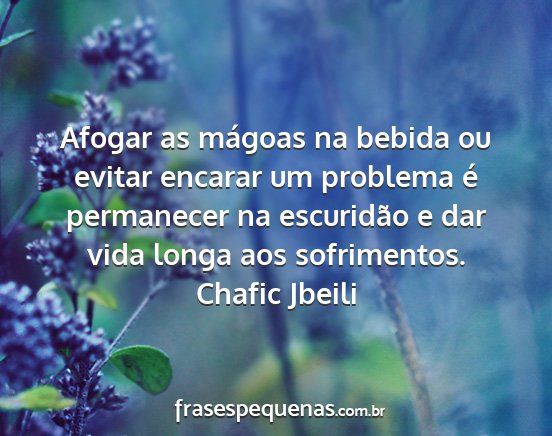 Afogar as mágoas na bebida ou evitar encarar um problema é permanecer na escuridão e dar vida longa aos sofrimentos.Chafic Jbeili