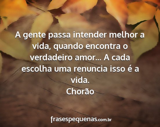 A gente passa intender melhor a vida, quando encontra o verdadeiro amor... A cada escolha uma renuncia isso é a vida.Chorão