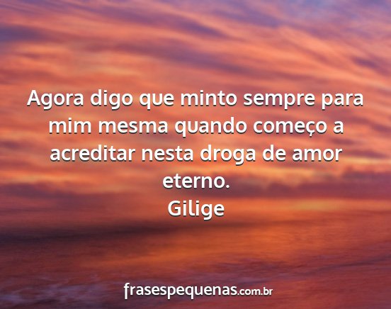 Agora digo que minto sempre para mim mesma quando começo a acreditar nesta droga de amor eterno.Gilige