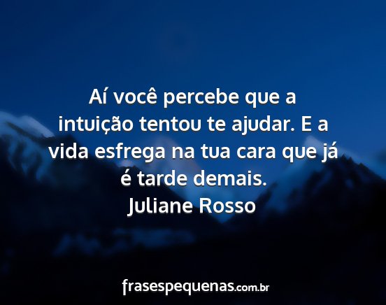 Aí você percebe que a intuição tentou te ajudar. E a vida esfrega na tua cara que já é tarde demais.Juliane Rosso
