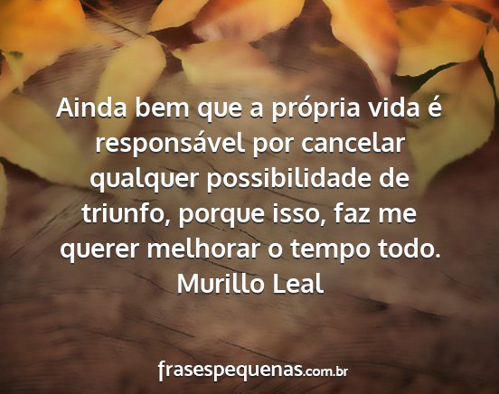 Ainda bem que a própria vida é responsável por cancelar qualquer possibilidade de triunfo, porque isso, faz me querer melhorar o tempo todo.Murillo Leal
