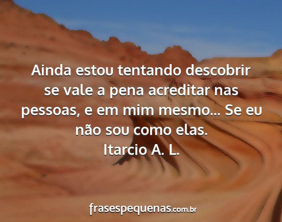 Ainda estou tentando descobrir se vale a pena acreditar nas pessoas, e em mim mesmo... Se eu não sou como elas.Itarcio A. L.