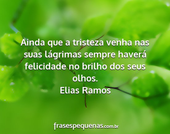 Ainda que a tristeza venha nas suas lágrimas sempre haverá felicidade no brilho dos seus olhos.Elias Ramos