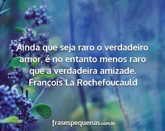 Ainda que seja raro o verdadeiro amor, é no entanto menos raro que a verdadeira amizade.François La Rochefoucauld