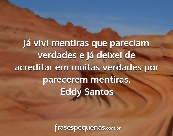 Já vivi mentiras que pareciam verdades e já deixei de acreditar em muitas verdades por parecerem mentiras.Eddy Santos