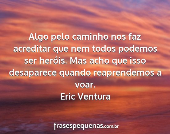 Algo pelo caminho nos faz acreditar que nem todos podemos ser heróis. Mas acho que isso desaparece quando reaprendemos a voar.Eric Ventura
