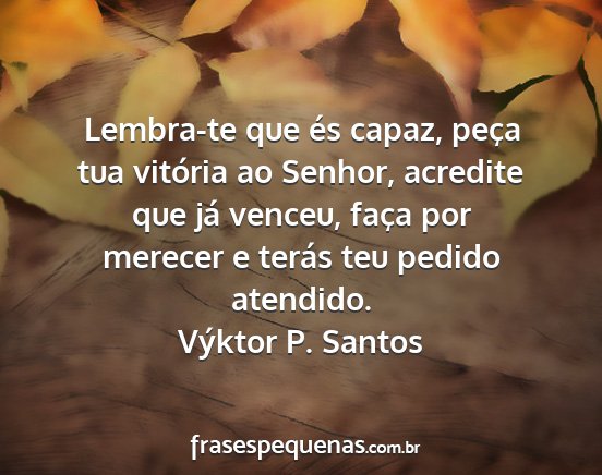 Lembra-te que és capaz, peça tua vitória ao Senhor, acredite que já venceu, faça por merecer e terás teu pedido atendido.Výktor P. Santos