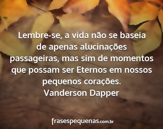 Lembre-se, a vida não se baseia de apenas alucinações passageiras, mas sim de momentos que possam ser Eternos em nossos pequenos corações.Vanderson Dapper
