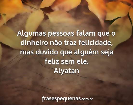 Algumas pessoas falam que o dinheiro não traz felicidade, mas duvido que alguém seja feliz sem ele.Alyatan