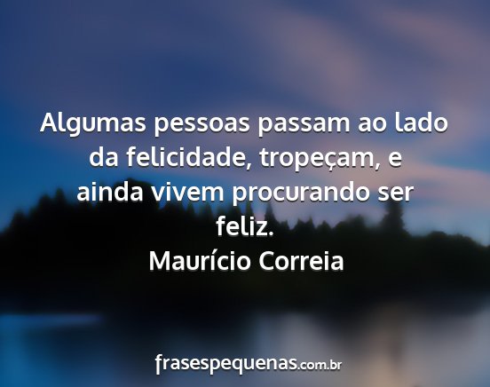 Algumas pessoas passam ao lado da felicidade, tropeçam, e ainda vivem procurando ser feliz.Maurício Correia