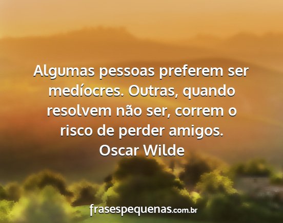 Algumas pessoas preferem ser medíocres. Outras, quando resolvem não ser, correm o risco de perder amigos.Oscar Wilde