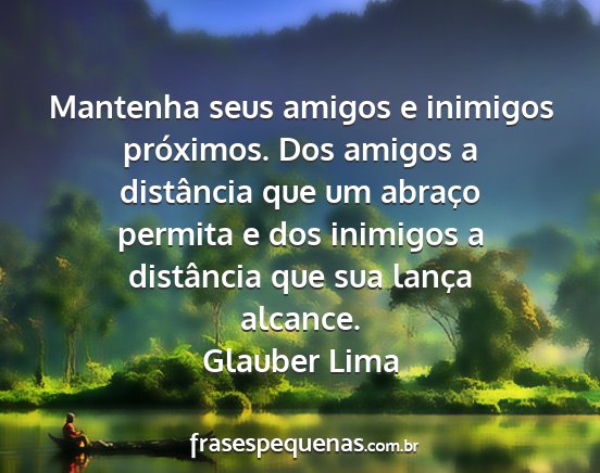 Mantenha seus amigos e inimigos próximos. Dos amigos a distância que um abraço permita e dos inimigos a distância que sua lança alcance.Glauber Lima