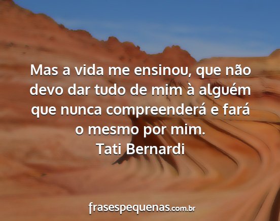 Mas a vida me ensinou, que não devo dar tudo de mim à alguém que nunca compreenderá e fará o mesmo por mim.Tati Bernardi