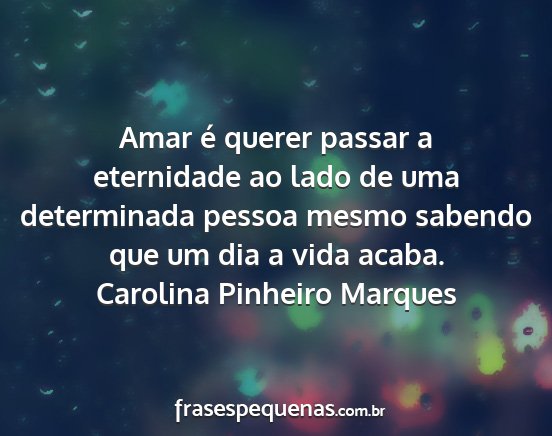 Amar é querer passar a eternidade ao lado de uma determinada pessoa mesmo sabendo que um dia a vida acaba.Carolina Pinheiro Marques