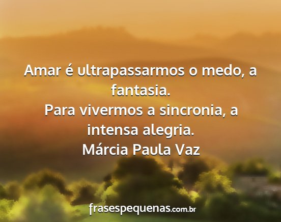 Amar é ultrapassarmos o medo, a fantasia.Para vivermos a sincronia, a intensa alegria.Márcia Paula Vaz