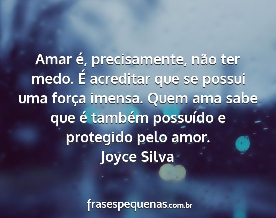 Amar é, precisamente, não ter medo. É acreditar que se possui uma força imensa. Quem ama sabe que é também possuído e protegido pelo amor.Joyce Silva