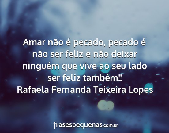 Amar não é pecado, pecado é não ser feliz e não deixar ninguém que vive ao seu lado ser feliz também!!Rafaela Fernanda Teixeira Lopes