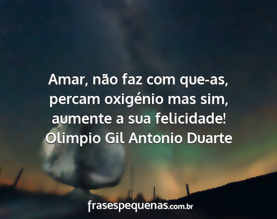 Amar, não faz com que-as, percam oxigénio mas sim, aumente a sua felicidade!Olimpio Gil Antonio Duarte