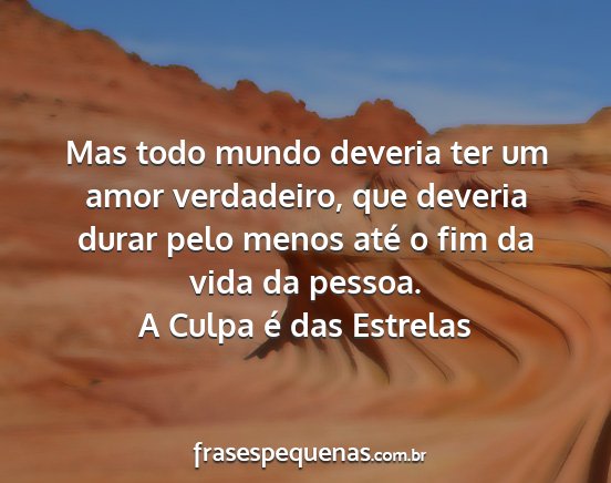 Mas todo mundo deveria ter um amor verdadeiro, que deveria durar pelo menos até o fim da vida da pessoa.A Culpa é das Estrelas