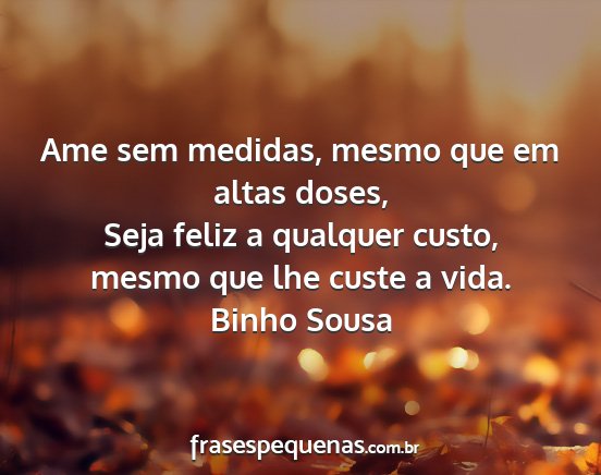 Seja feliz a qualquer custo, mesmo que lhe custe a vida.Binho Sousa