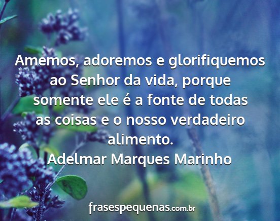 Amemos, adoremos e glorifiquemos ao Senhor da vida, porque somente ele é a fonte de todas as coisas e o nosso verdadeiro alimento.Adelmar Marques Marinho