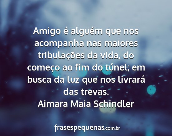 Amigo é alguém que nos acompanha nas maiores tribulações da vida, do começo ao fim do túnel; em busca da luz que nos livrará das trevas.Aimara Maia Schindler