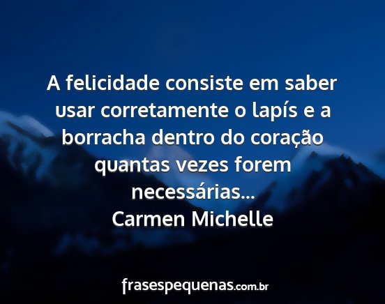 A felicidade consiste em saber usar corretamente o lapís e a borracha dentro do coração quantas vezes forem necessárias...Carmen Michelle