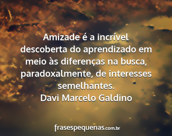 Amizade é a incrível descoberta do aprendizado em meio às diferenças na busca, paradoxalmente, de interesses semelhantes.Davi Marcelo Galdino