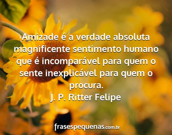 Amizade é a verdade absoluta magnificente sentimento humano que é incomparável para quem o sente inexplicável para quem o procura.J. P. Ritter Felipe