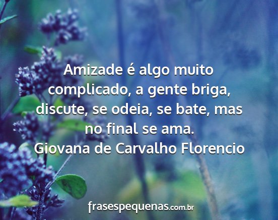 Amizade é algo muito complicado, a gente briga, discute, se odeia, se bate, mas no final se ama.Giovana de Carvalho Florencio