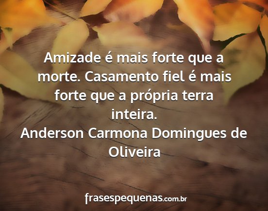 Amizade é mais forte que a morte. Casamento fiel é mais forte que a própria terra inteira.Anderson Carmona Domingues de Oliveira