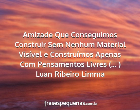 Amizade Que Conseguimos Construir Sem Nenhum Material Visível e Construímos Apenas Com Pensamentos Livres (... )Luan Ribeiro Limma
