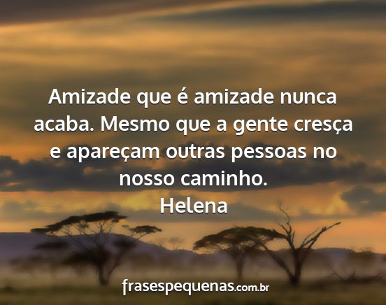 Amizade que é amizade nunca acaba. Mesmo que a gente cresça e apareçam outras pessoas no nosso caminho.Helena