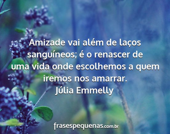 Amizade vai além de laços sanguíneos; é o renascer de uma vida onde escolhemos a quem iremos nos amarrar.Júlia Emmelly