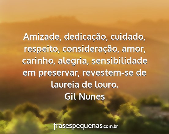 Amizade, dedicação, cuidado, respeito, consideração, amor, carinho, alegria, sensibilidade em preservar, revestem-se de laureia de louro.Gil Nunes