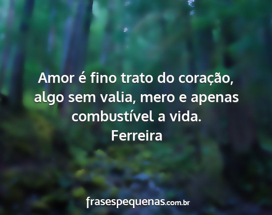 Amor é fino trato do coração, algo sem valia, mero e apenas combustível a vida.