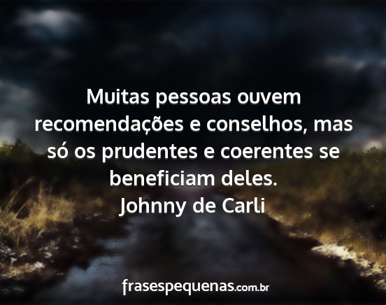 Muitas pessoas ouvem recomendações e conselhos, mas só os prudentes e coerentes se beneficiam deles.Johnny de Carli