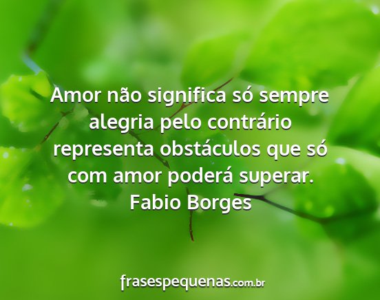 Amor não significa só sempre alegria pelo contrário representa obstáculos que só com amor poderá superar.Fabio Borges