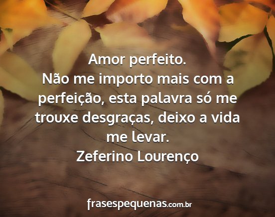 Não me importo mais com a perfeição, esta palavra só me trouxe desgraças, deixo a vida me levar.Zeferino Lourenço