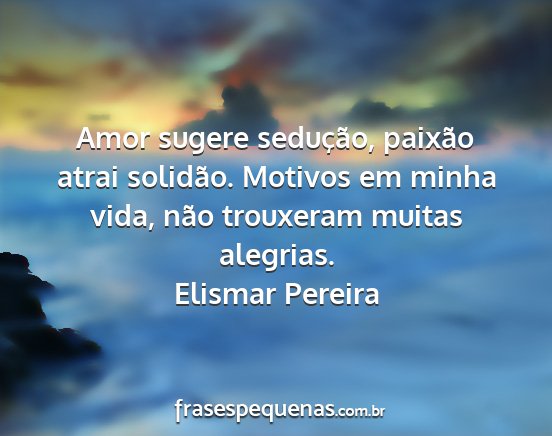 Amor sugere sedução, paixão atrai solidão. Motivos em minha vida, não trouxeram muitas alegrias.Elismar Pereira