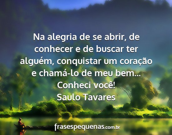 Na alegria de se abrir, de conhecer e de buscar ter alguém, conquistar um coração e chamá-lo de meu bem... Conheci você!Saulo Tavares
