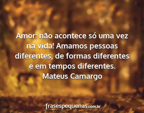 Amor: não acontece só uma vez na vida! Amamos pessoas diferentes, de formas diferentes e em tempos diferentes.Mateus Camargo